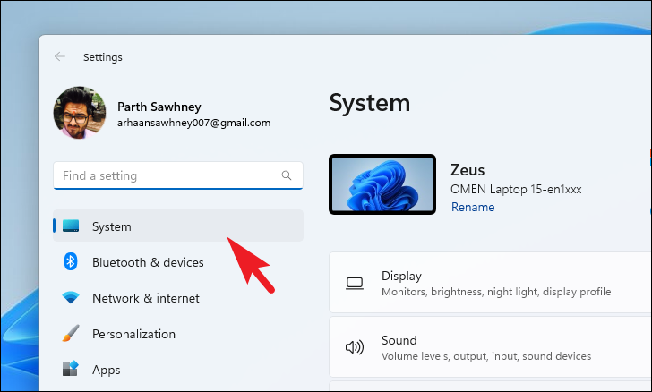 Step 2: Ensure that System is selected in the left sidebar.