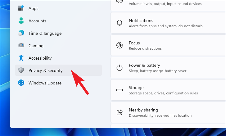 Step 2: Select Privacy & Security from the left sidebar.