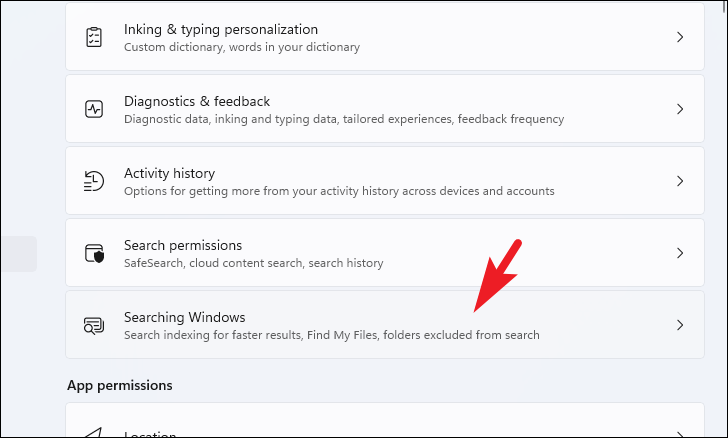 Step 3: Click on Searching Windows in the right pane.