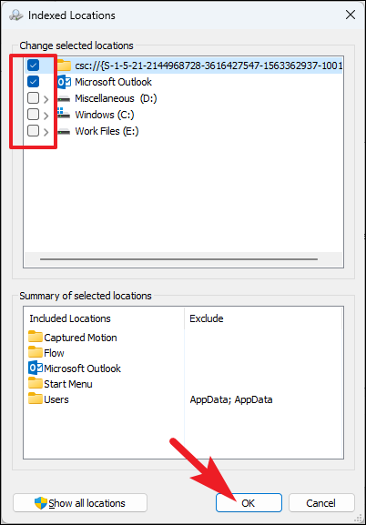 Step 7: Click OK to save your changes. Windows will update the search index according to your selections, which may take some time.