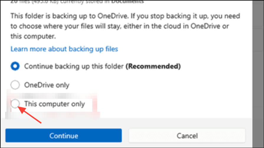 Step 4: When prompted, confirm your choice. If the system asks where to keep your files, choose This computer only to move the files back to your local folders. If this option doesn't appear, you may need to move the files manually from the OneDrive folder to your desired local folder.