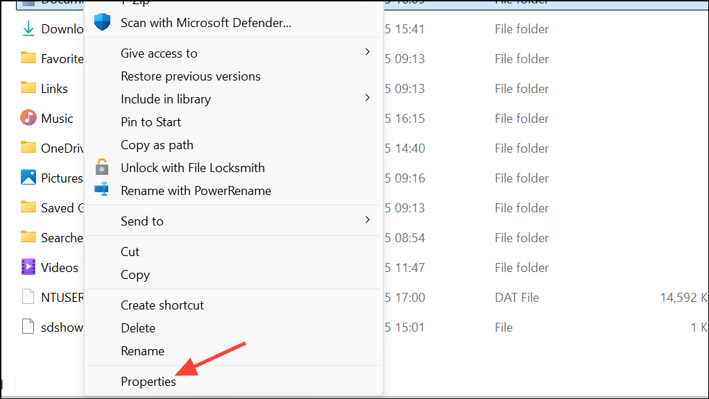 Step 2: Right-click on a folder such as Desktop or Documents, then select Properties.