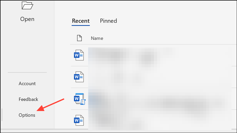 Step 2: Click on File in the top menu, then select Options at the bottom left.