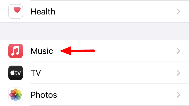 Next, scroll down and select the ‘Music’ app from the list.
