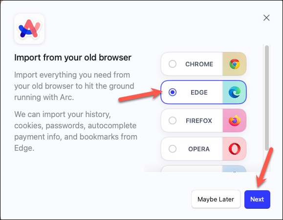 - Select the browser you want to import the data from and click 'Next'. Along with extensions, this step will also import other data like your history, cookies, passwords, payment info, bookmarks, etc. You'll have control over which bookmarks to import further down the lane.