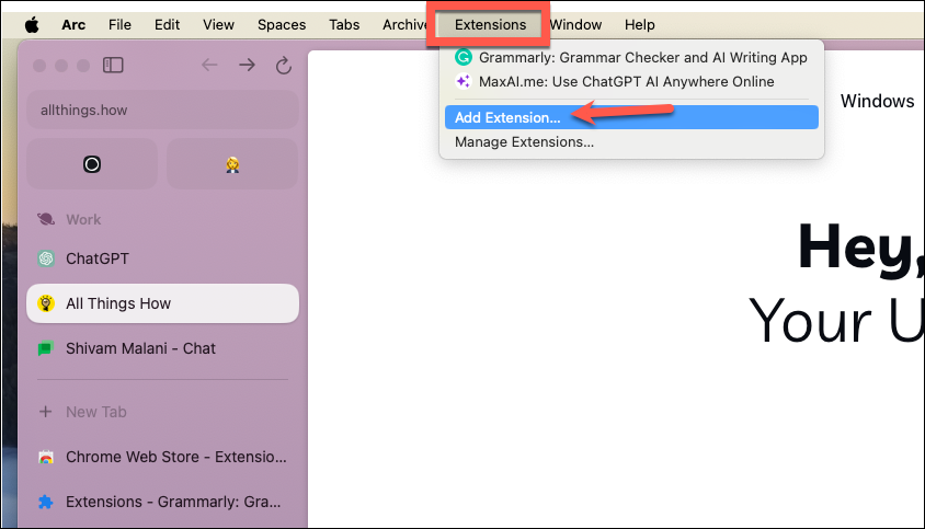 - Open the Arc browser on your Mac.