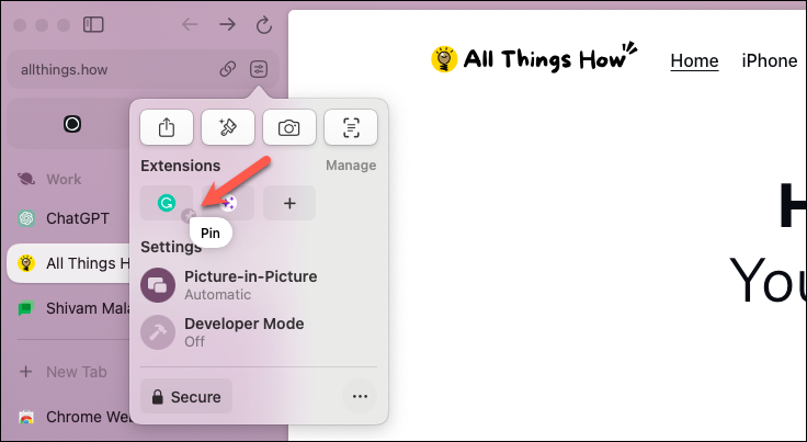 - You can also right-click the extension icon and select 'Pin' from the context menu.