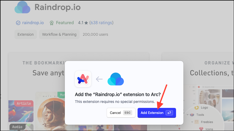 - Click the 'Add extension' icon from the dialog box that appears to add it to Arc.