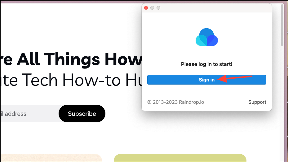 - Click on Sign In and sign in/ create an account on Raindrop to use the extension.