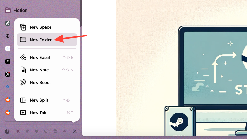 If you don't want a Bookmarks folder crowding your sidebar, you can simply create a separate Space, name it Bookmarks, and drop any pinned tabs/ folders to that Space to find them later. We know it's not very efficient, but it'll get the job done.