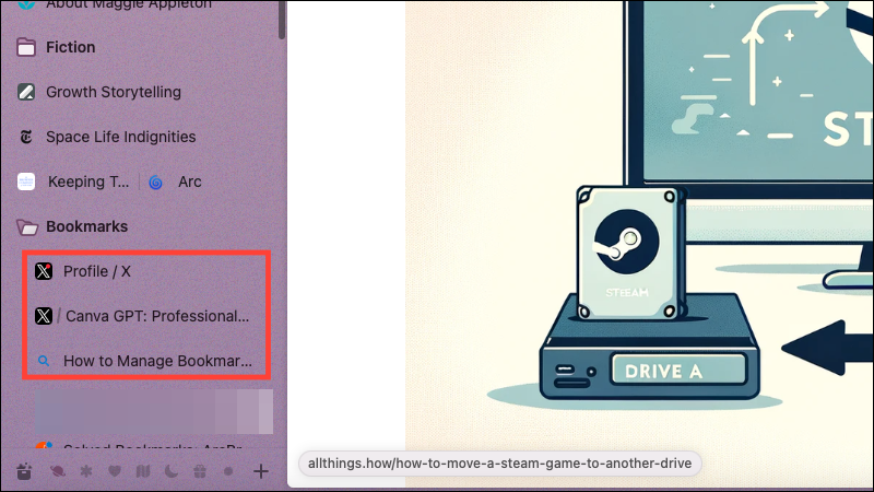 - Managing the Bookmarks folder: Arc users often think that the Bookmarks folder is not a very practical solution since the folder will expand, flooding your sidebar when you want to open/ find a pinned tab from it. But that's not the case.