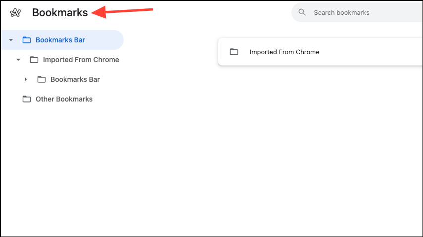 Cmd+T) and navigating to chrome://bookmarks.