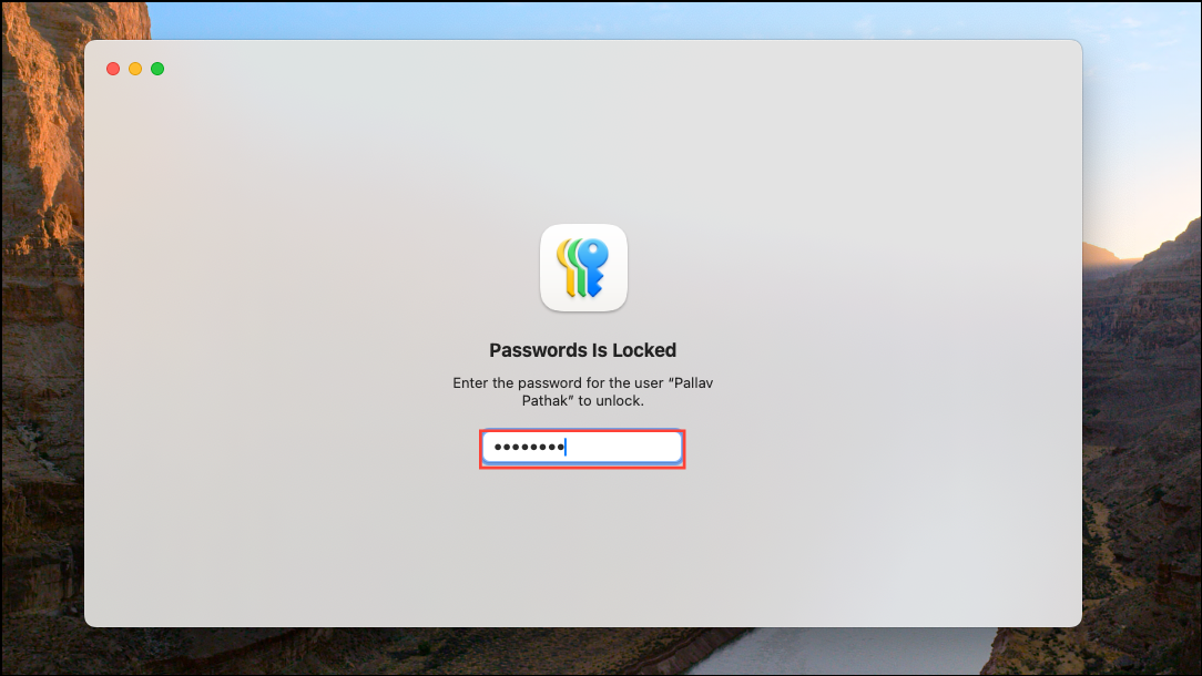 Step 2: Upon launching the Passwords app, you'll be prompted to unlock it using your Mac's admin password or Touch ID. This ensures that only authorized users can access sensitive information.