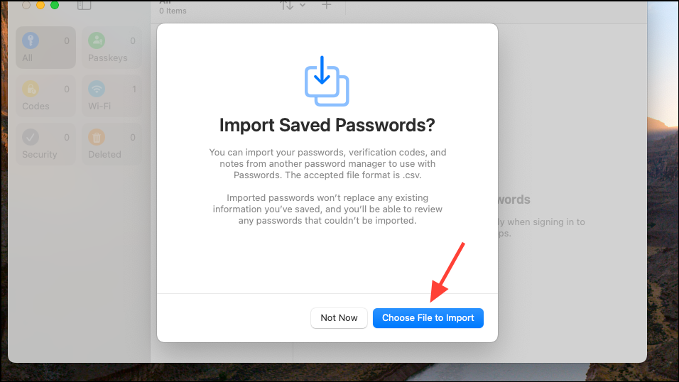Step 3: When the app opens for the first time, you'll have the option to import passwords from another password manager in CSV format. If you have existing passwords stored elsewhere, select "Import Passwords" from the File menu and choose the appropriate CSV file. Imported passwords will be added alongside your existing ones without overwriting data.