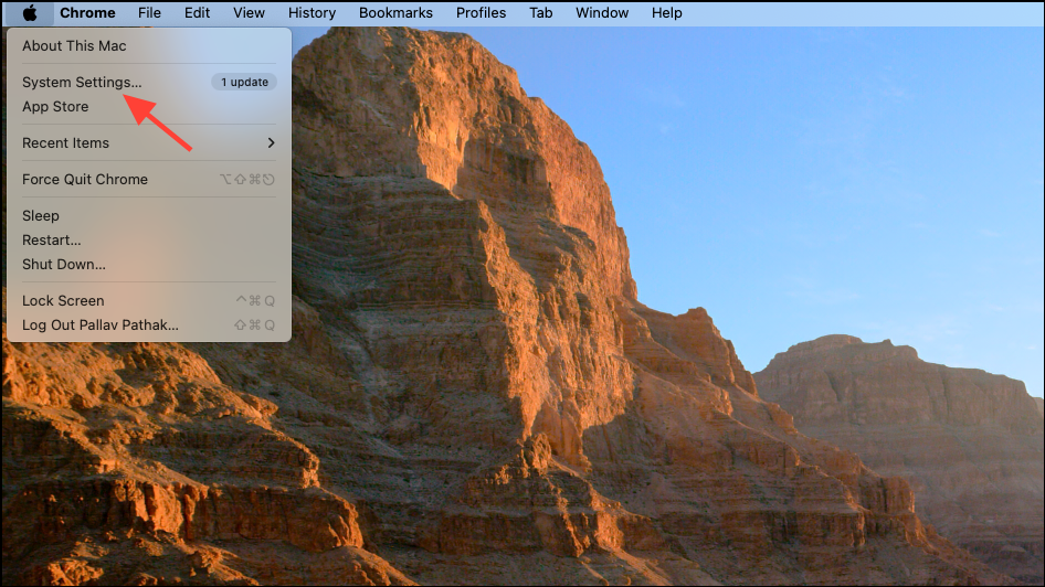Step 1: To ensure synchronization is enabled, click the Apple logo at the top right and then click on "System Settings."