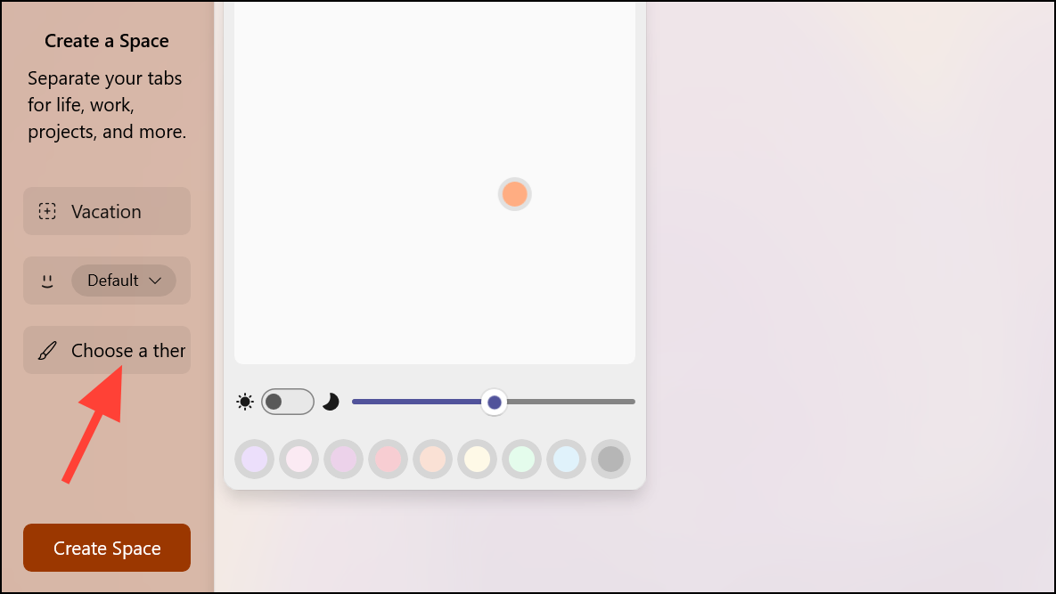 - Then, choose a theme for your Space. Each Space can have a different theme, allowing you to visually differentiate between them easily.