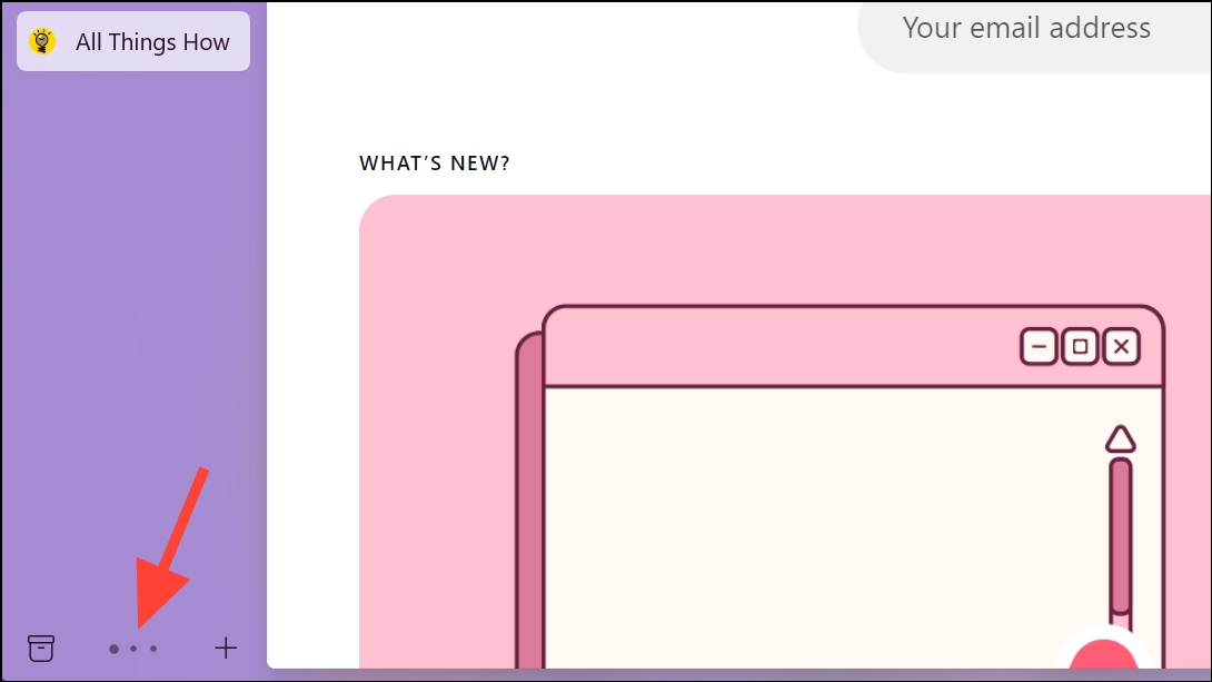 - You can click on the dots at the bottom of the sidebar to go to a space. However, since Arc on Windows does not support icons yet, it can be hard to differentiate between them as efficiently as Arc on Mac.