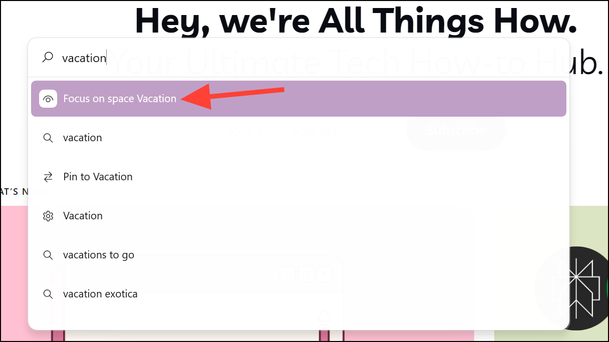 - Alternatively, you can use the Command Bar, type the Space's name, and click on the 'Focus on space [Space Name]' option to go to a Space.