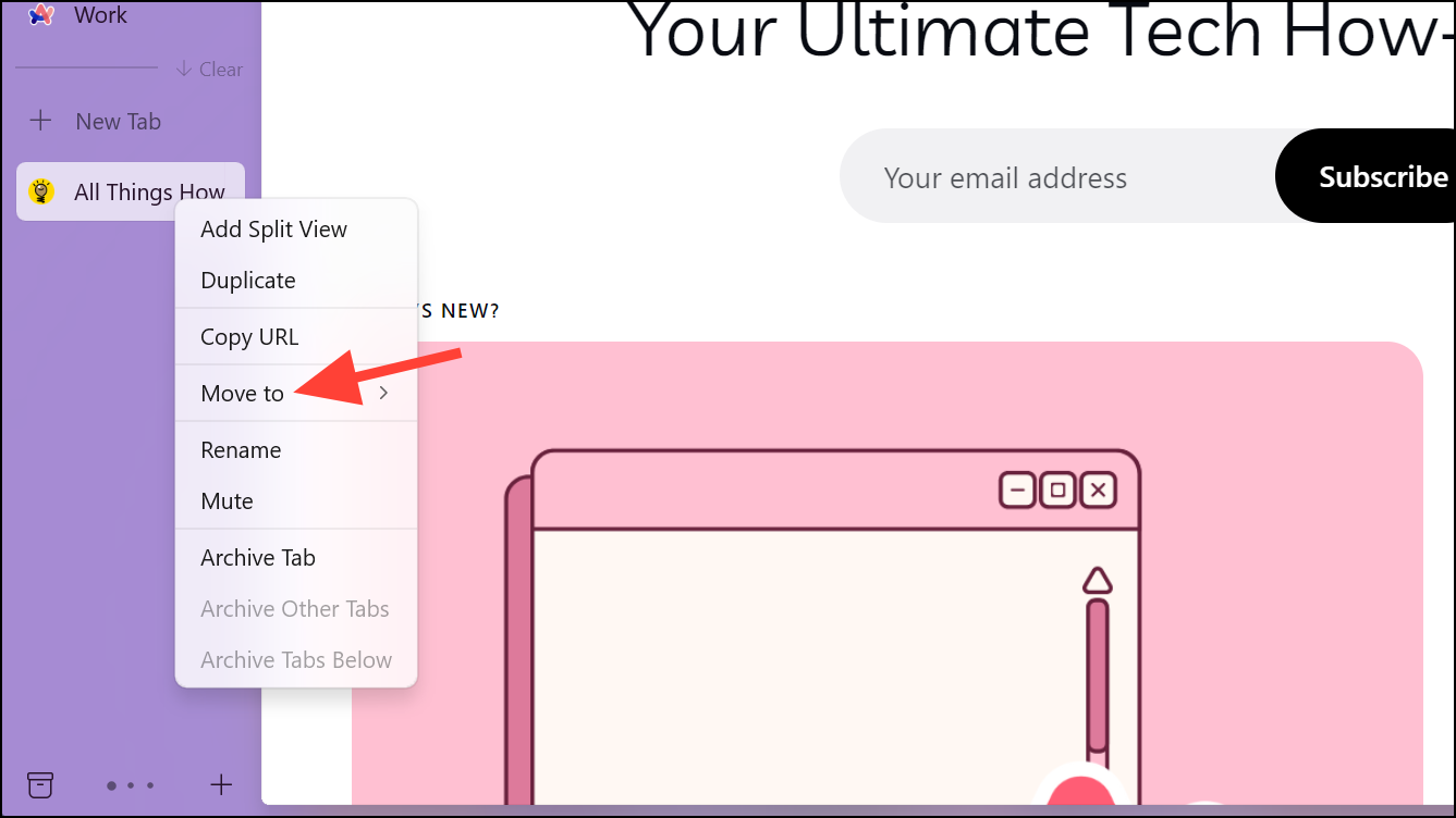 - Right-click on a tab and go to the 'Move to' option.