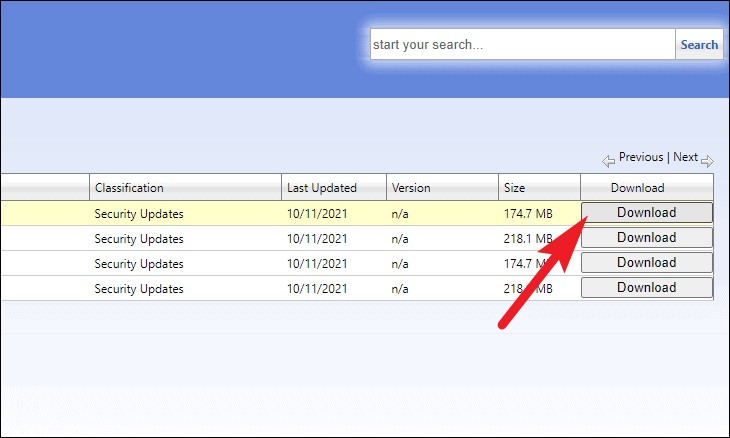 - Once you've identified the correct package, click the 'Download' button located on the far right of the update's row. This action will open a separate window.