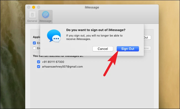 Now, again click on the ‘Sign Out’ button present on the overlay prompt to sign out of iMessage.