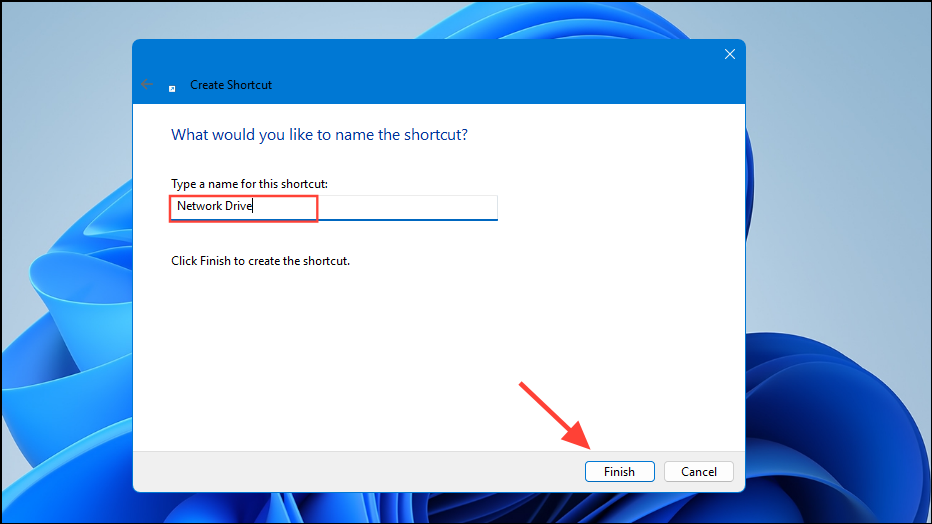 Step 2: Click "Next", provide a name for your shortcut, and click "Finish".