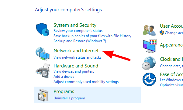 In the Control Panel, select ‘Network and Internet’.