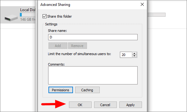 After saving the permissions, again click on ‘OK’.
