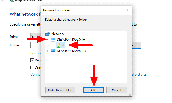 All the devices on the network will be visible on the system. Click on the device name, select the drive to be mapped and then click on ‘OK’.