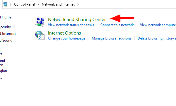 Now click on ‘Network and Sharing Center’, the first option.
