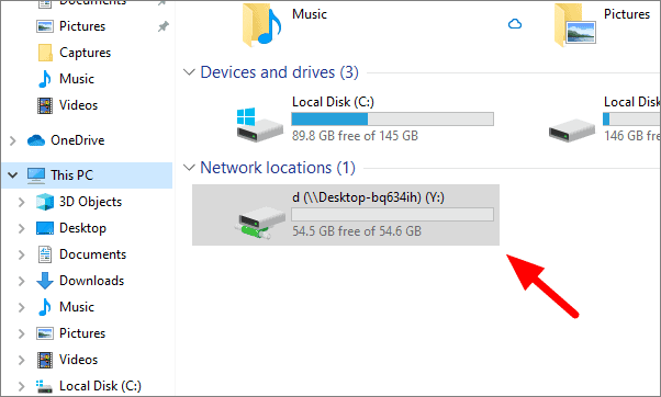 The mapped drive is visible under Network locations in ‘This PC’. You can now access the files on this drive and store data on it as well. All changes made on the mapped drive will also reflect on the other systems sharing the drive.