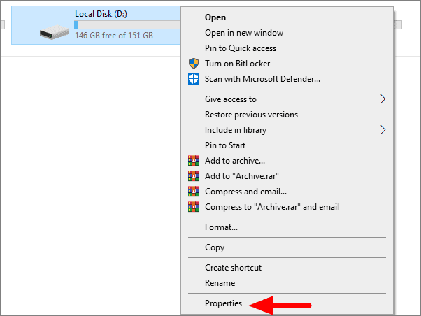 To enable sharing, right-click on the drive you want to map in File Explorer, and select ‘Properties’.