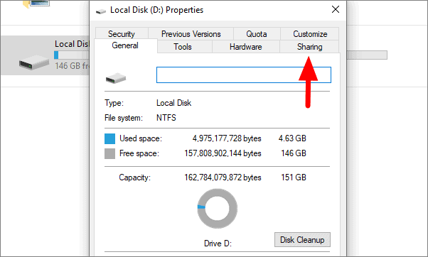 In disk properties, go to the ‘Sharing’ tab.
