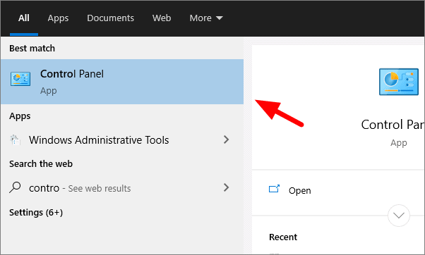 To check if the network discovery is on, search for ‘Control Panel’ in the Search Menu and then open it.