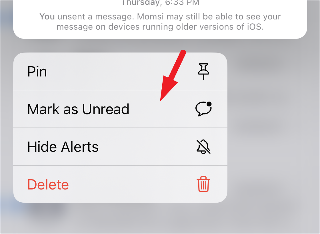 Few options would appear underneath the conversation thread. Tap on the ‘Mark as Unread’ option from the menu to mark the conversation as unread.