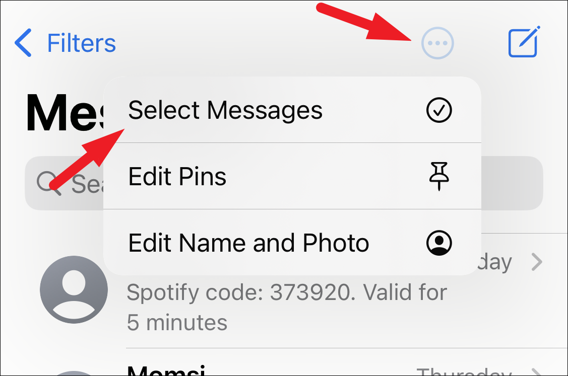 To mark multiple conversation threads as unread in a single go, tap on the ‘More’ options button present in the top right corner. Then, tap on the ‘Select messages’ option.