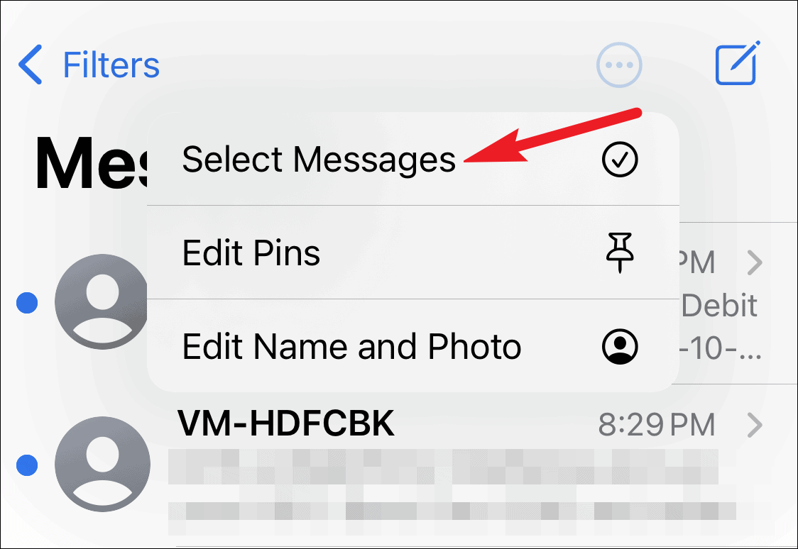 Tap on ‘Select Messages’ from the menu that appears.