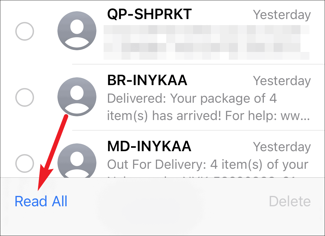 Then, tap on ‘Read All’ at the lower left corner to mark all messages as read.