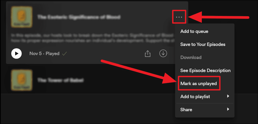 Marking Podcasts Episodes as ‘Unplayed’ on Spotify Desktop App