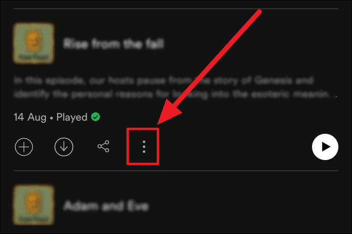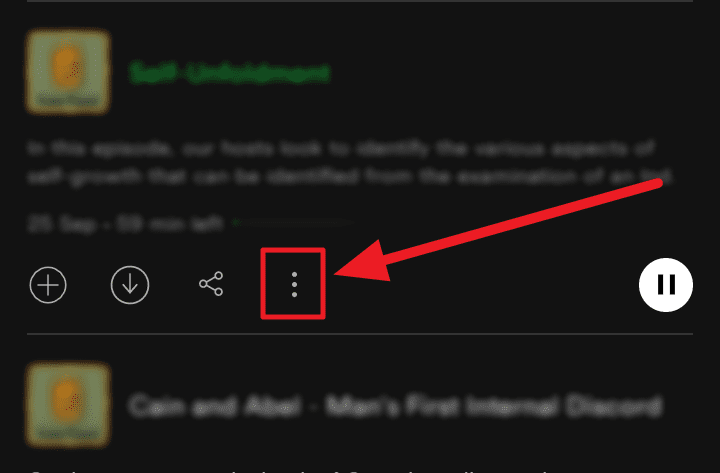 Now choose and open the podcast with the episode you want to mark as ‘Played’. Tap the ellipsis icon (three vertical dots) below the intro of the episode.