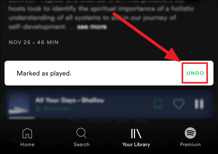 You will receive a brief notification when you mark an episode as ‘Played’ using this method. Here, you can instantly undo the marking and keep the episode fresh by clicking the green ‘Undo’ button to the right of the notification.