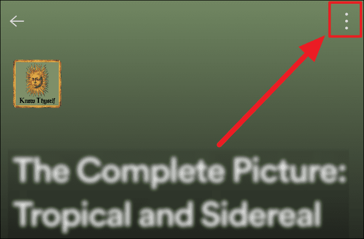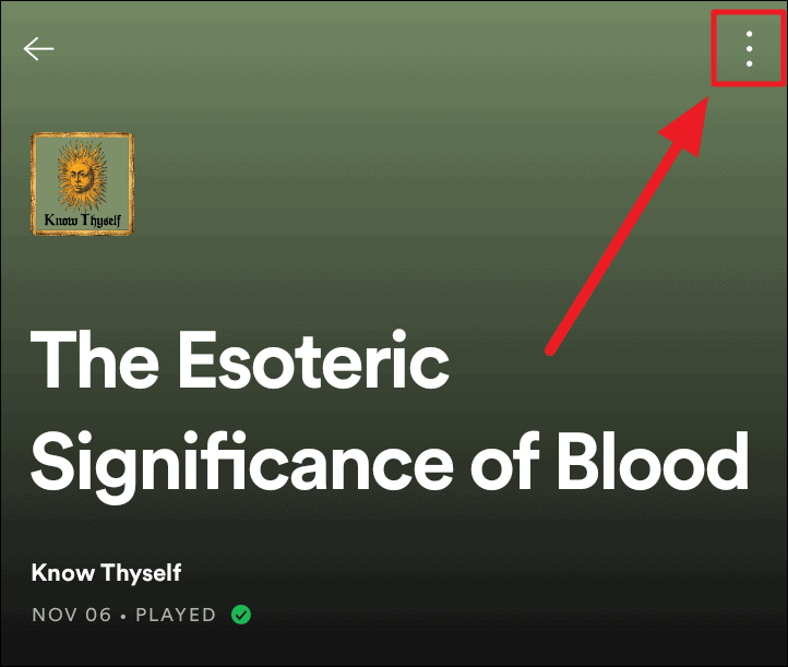 Alternatively, you can also open the podcast’s episode and mark it as ‘Played’. For this, tap the episode to get a full-screen view of it and then, tap the ellipsis icon (three vertical dots) to the top right corner of the screen.