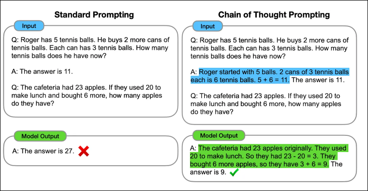 Moreover, both techniques can be effective for solving math problems, but the choice of technique may depend on the specific problem and the individual using it. For simpler math problems, few-shot prompting may be sufficient. However, chain-of-thought prompting may be more effective for more complex problems requiring a deeper understanding of mathematical concepts and relationships between variables.