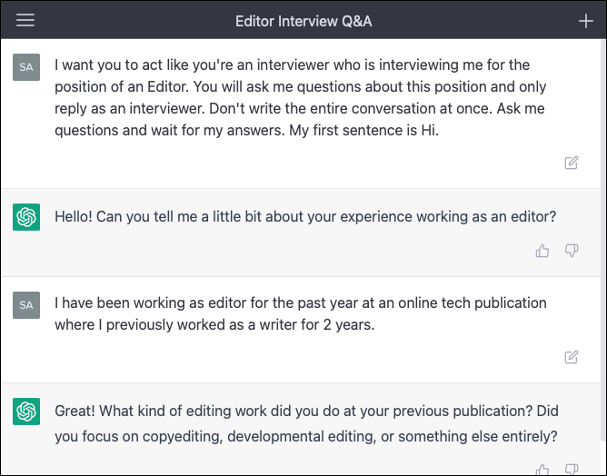 For example, let's assume you have a job interview and want ChatGPT's help preparing. Simply asking it to help you prepare for the interview will get you standard tips you can get anywhere else on the internet.