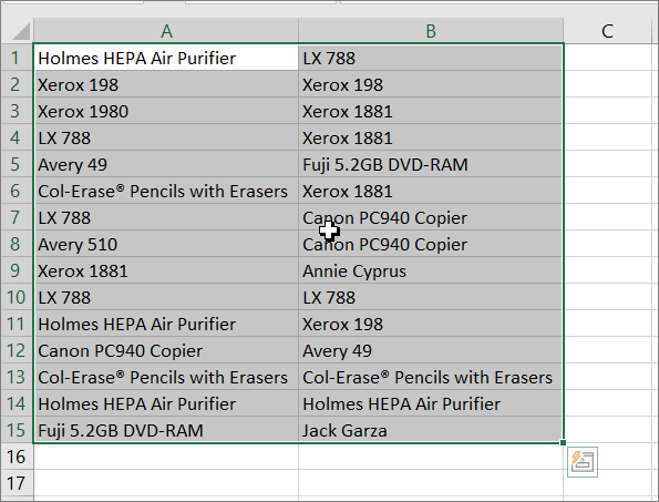 If you want to compare two columns and highlight the values existing in both columns even when they’re not in the same row, you can use the preset Conditional Formatting rules or custom formatting rules.