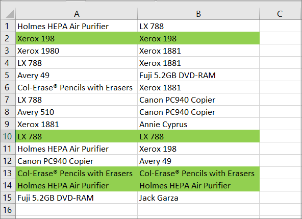 Alternatively, you can also use custom formatting rules to highlight duplicate values in two columns.