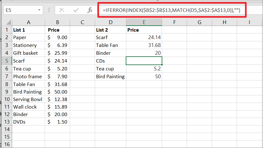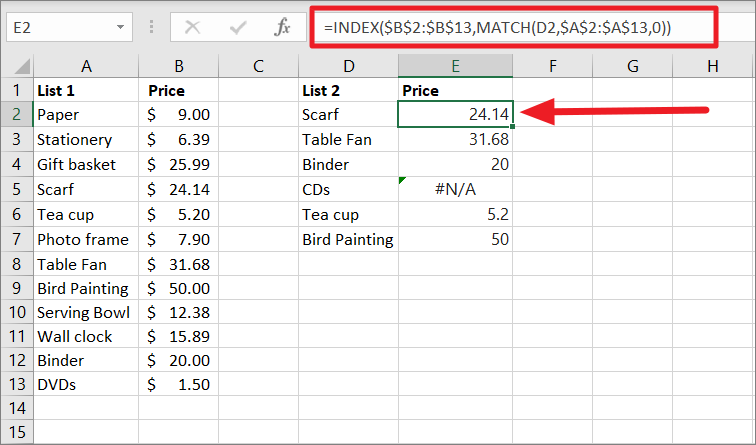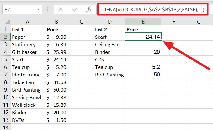 For example, we can use the below formula to compare two columns and if there is a match, we can get the result “Paid” or “Not Paid” if there is no match:
