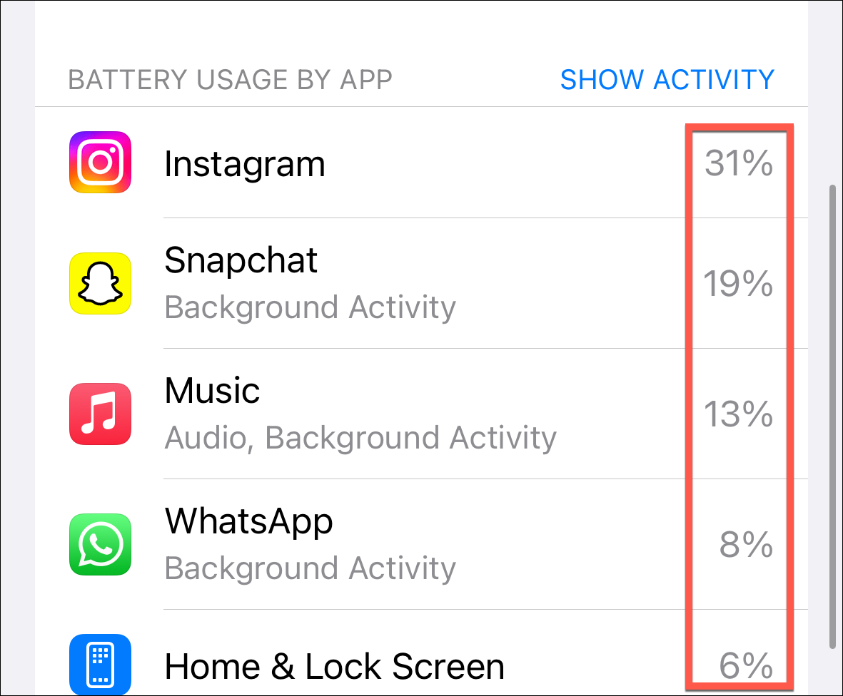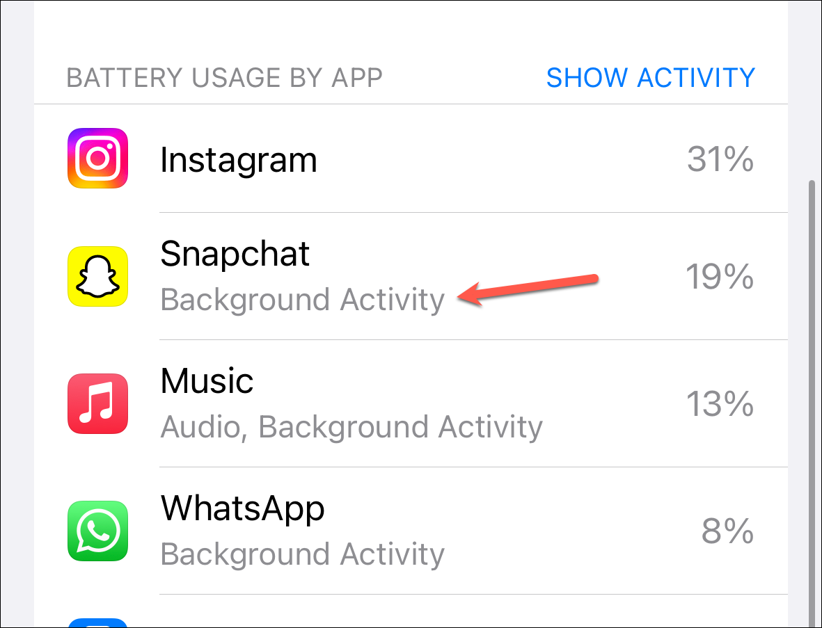 - Also, look out for the phrase 'Background Activity' underneath an app to determine if it's unnecessarily using battery in the background.