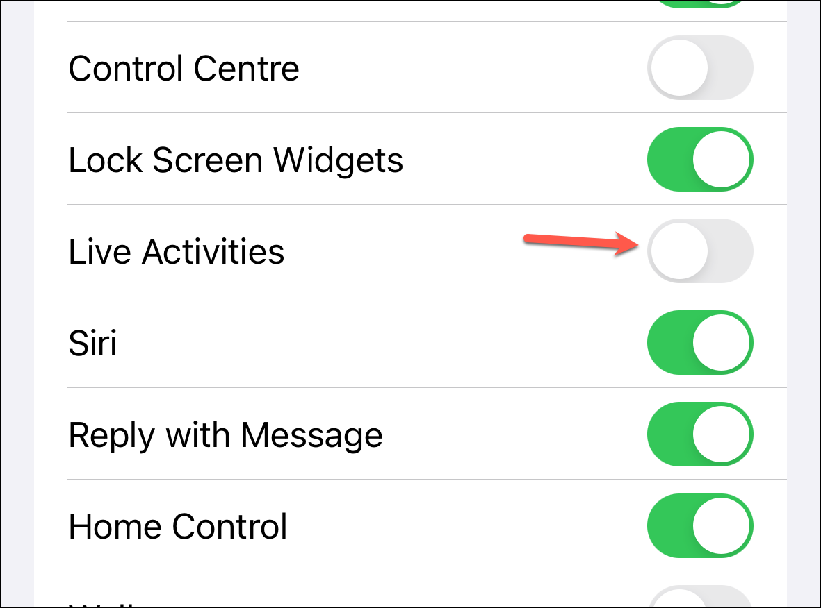 - Enter your iPhone's passcode. Then, scroll down and disable the toggle for 'Live Activities'.
