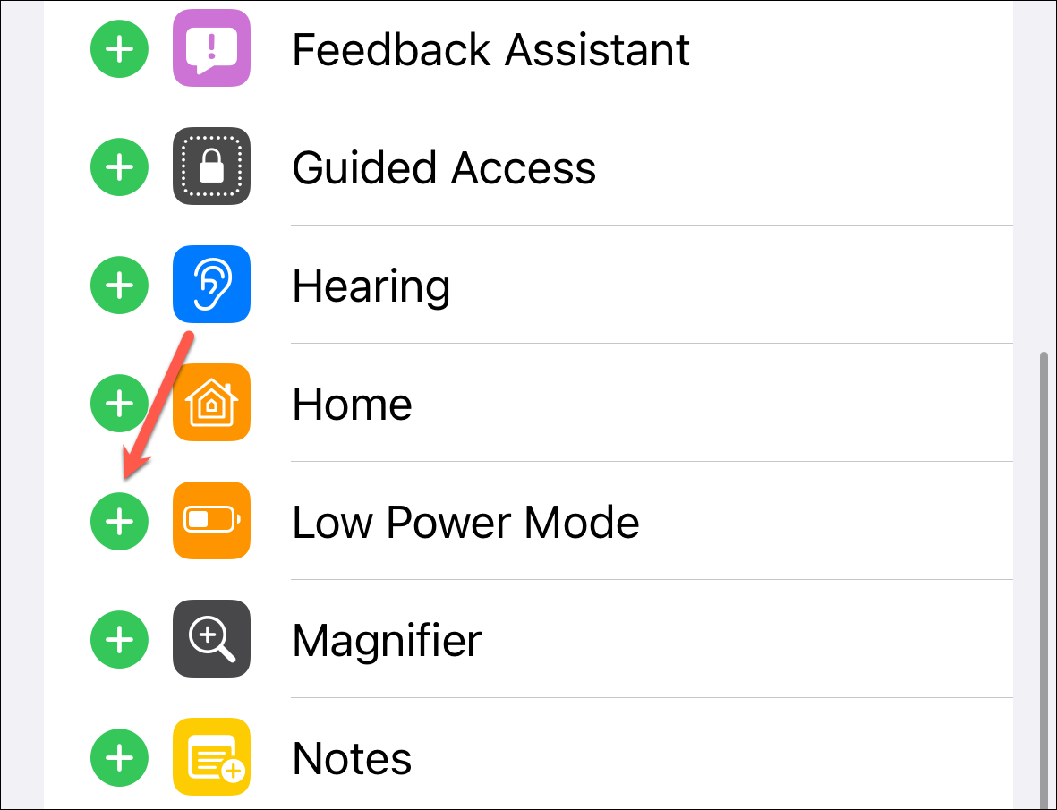 Settings>Control Centreand then, tap the '+' icon on the left of the 'Low Power Mode' tile.